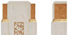 Die Gestaltung bedient sich der Formensprache des „Art Deco“. Die Verbindung von hellem und rötlichem Kalkstein mit einem Akzent von Gold bestimmt den Ausdruck ebenso wie die strenge vertikale Ausrichtung